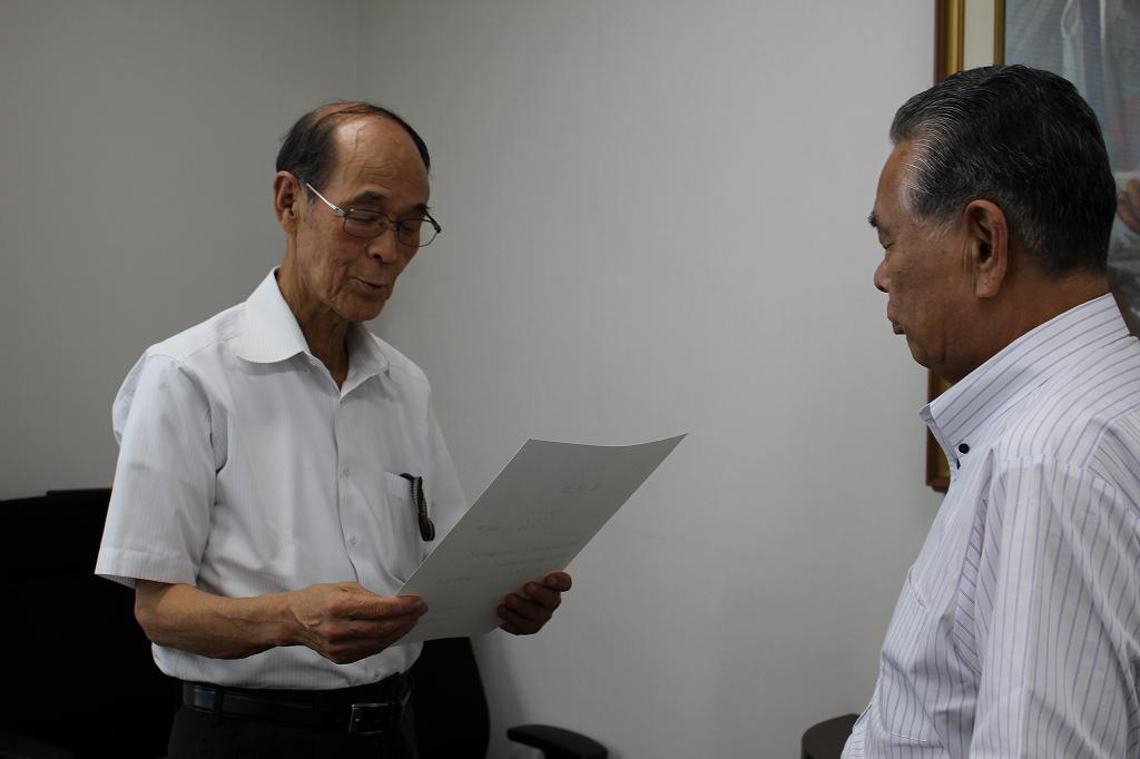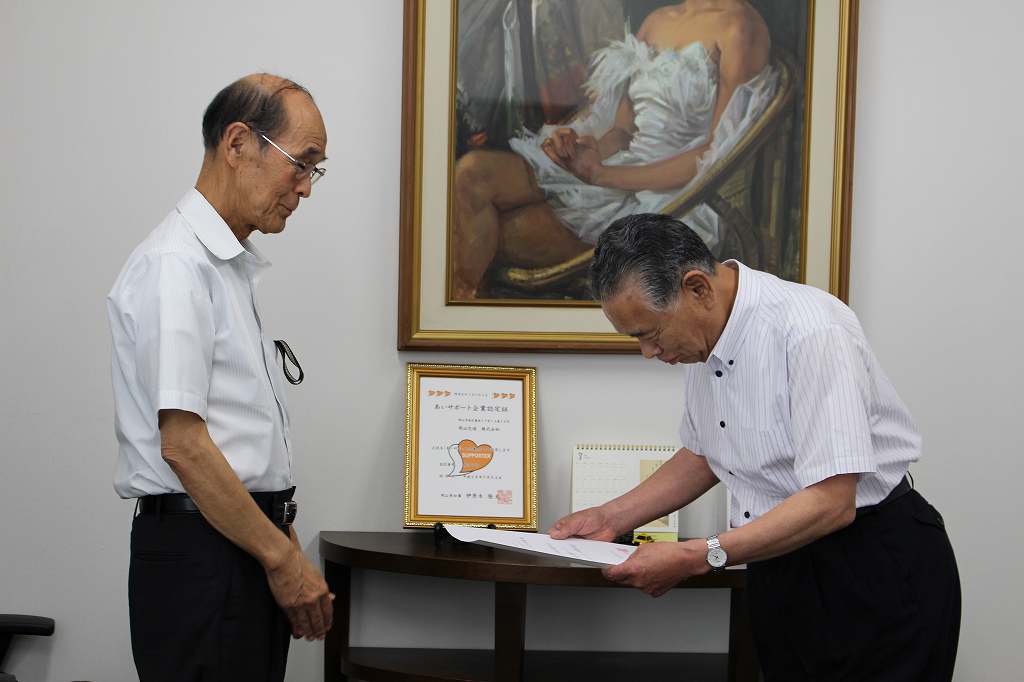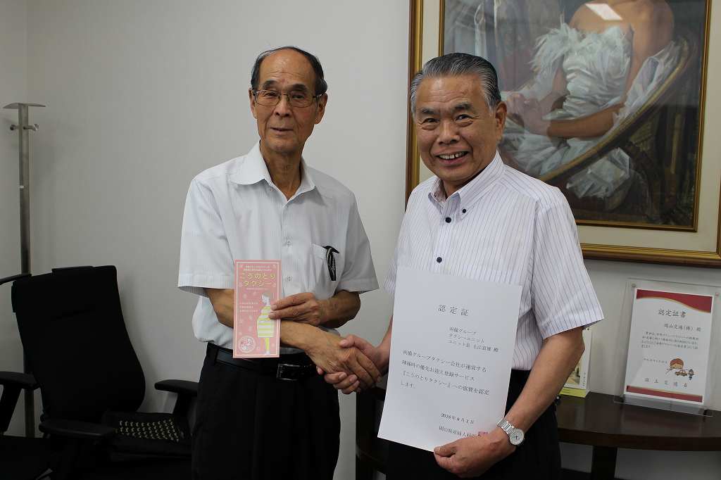 そして、先日、岡山県産婦人科医会の事務長 桐山様が岡山交通へ来訪され、土江ユニット長へ認定証の授与をしてくださいました。