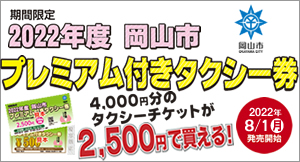 岡山市の発行する「岡山市プレミアム付きタクシー券」の取り扱いが2022年8月1日(月)より開始となります。