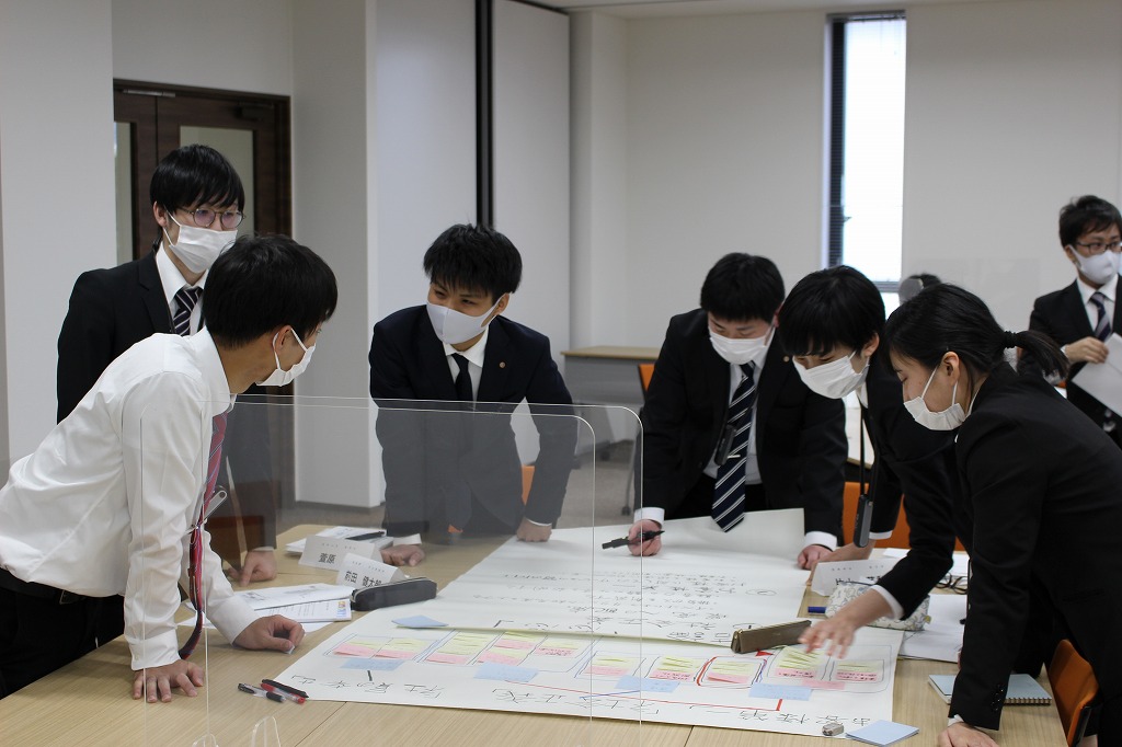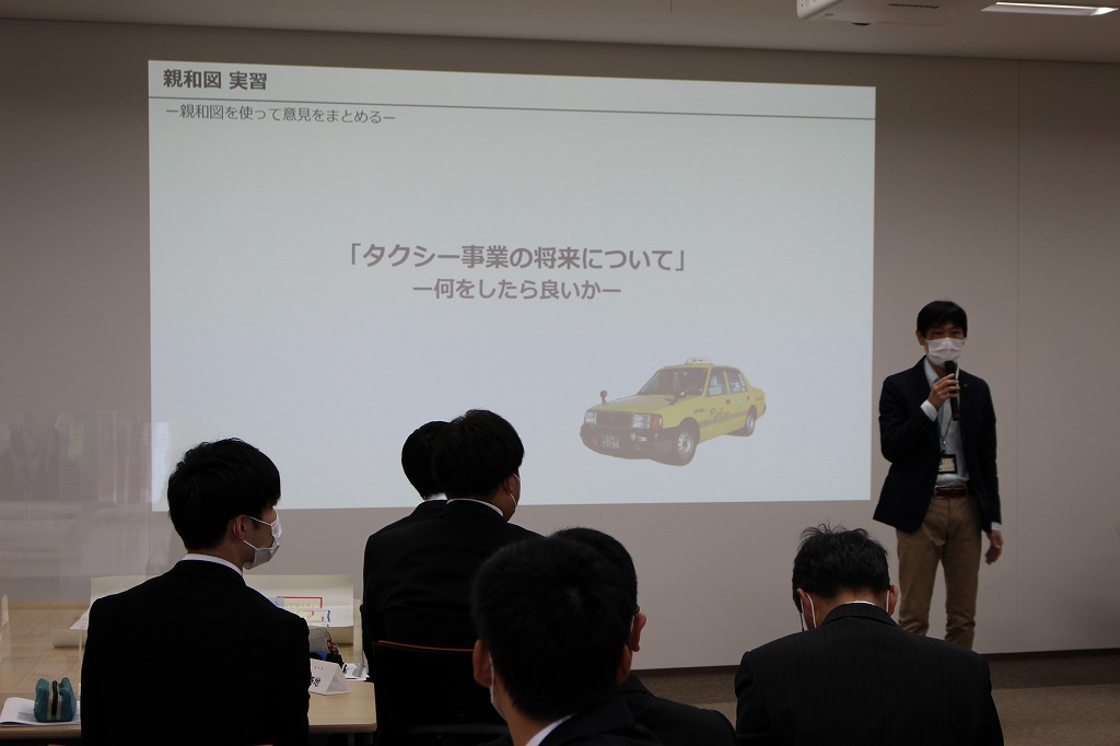 グループ討議の手法について教えていただき、4つのチームに分かれ、今後のタクシー事業で何をすべきかの意見を出し合います。