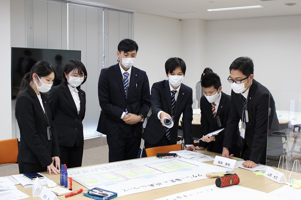 みんなで出し合った意見をまとめ、発表ための資料をみんなで作成中です。どのチームもかなり盛り上がっている様子です。