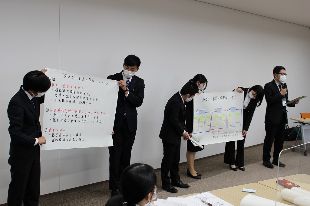 どのチームも、お客様の立場、乗務社員の立場に立ち、今後のタクシーのあり方についてよく考えられていて、たくさんのアイデアを聞くことができました。素晴らしい発表にみんな感心していました。