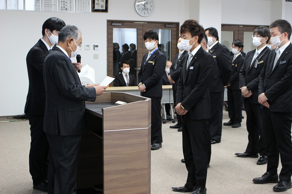 2021年度、各営業所の各班を取りまとめるチームリーダーの任命式を3月29日に執り行いました。