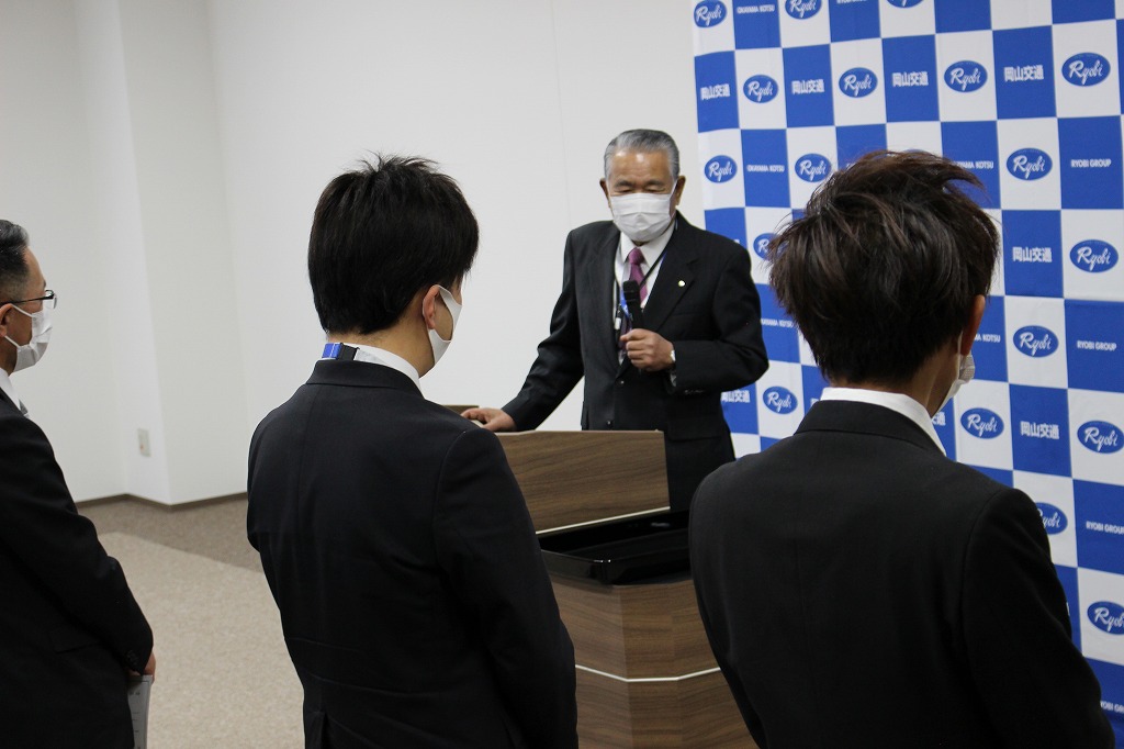 ひとりひとりへ辞令交付後、土江代表から激励の言葉をいただきました。
