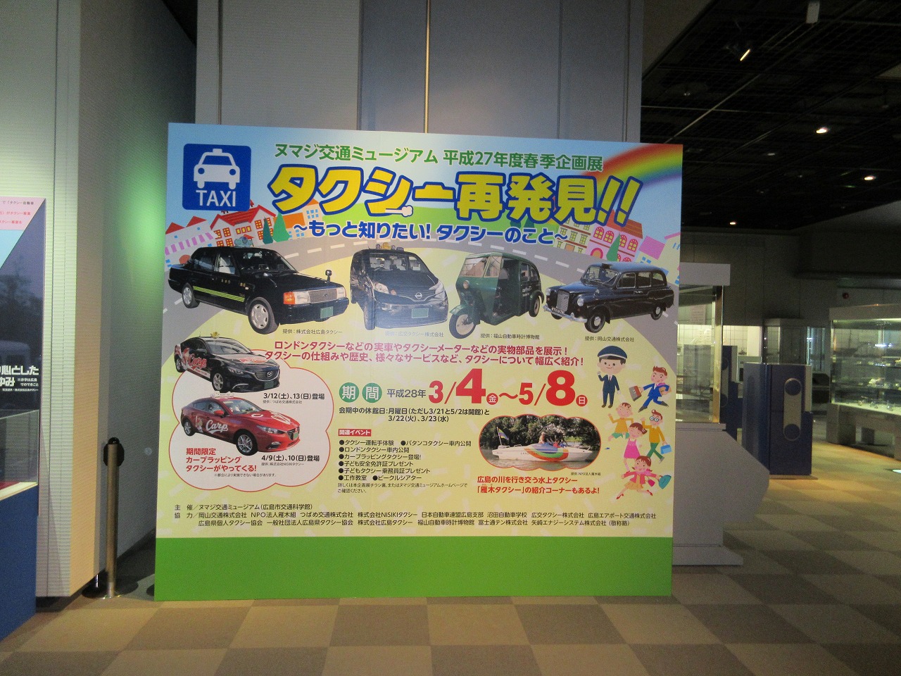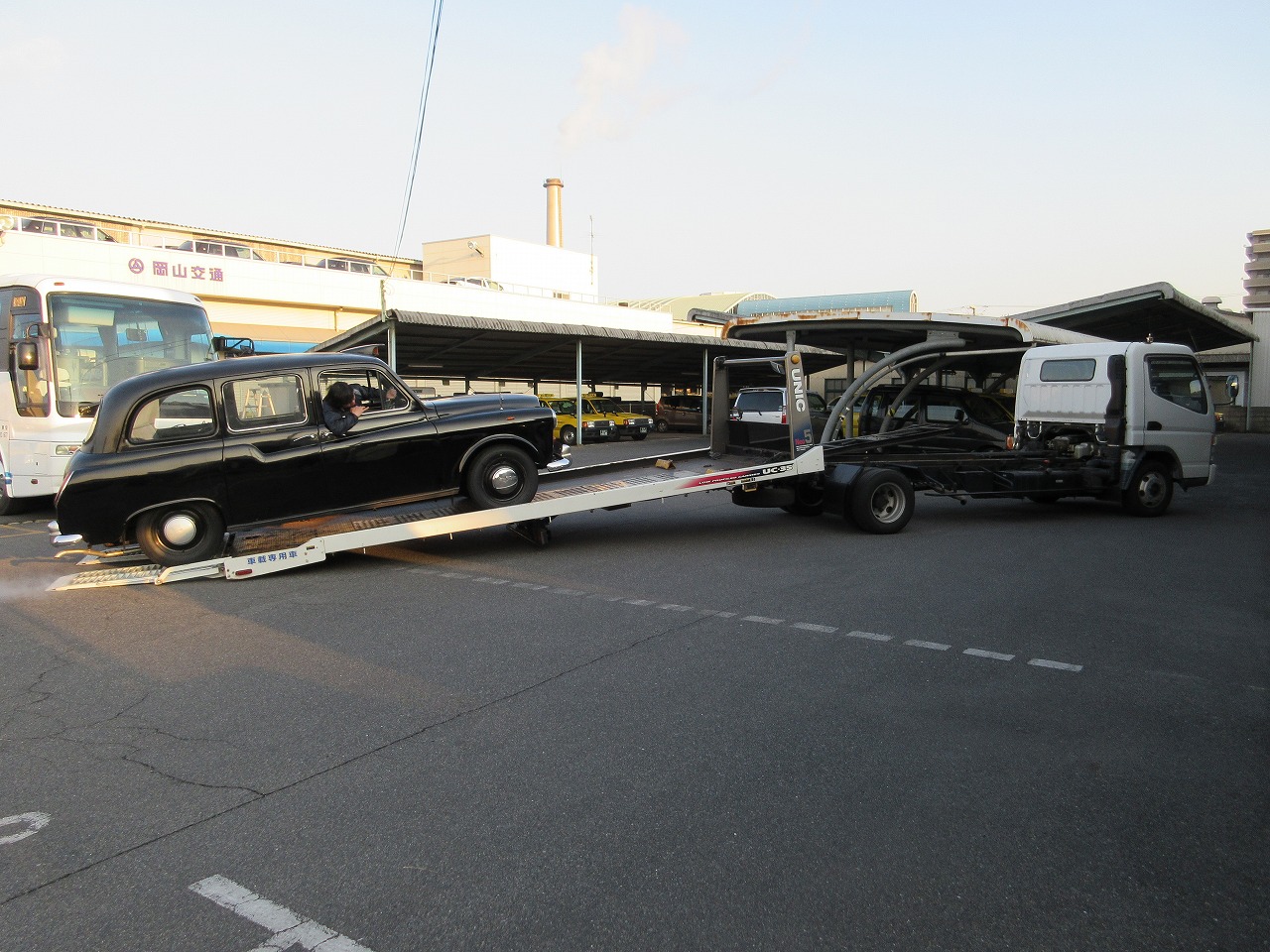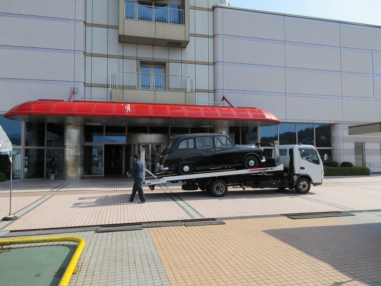 ProducerH 2016.03.02 H28.03.02(水) 岡山交通ロンドンタクシーが!! みなさま、岡山交通にロンドンタクシーがあるのをご存知でしょうか?1969年製なので、47歳でまだ走行可能!(公道は走行できませんが・・) その貴重なロンドンタクシーが、今朝・・・こんなことに! こんなことに!! ここはどこ?! 室内!? 広い場所ですねえ!? 設置完了!!! 実は・・・ 3/4~5/8の期間中、広島市安佐南区にある「ヌマジ交通ミュージアム」にて開催される『タクシー再発見!』というイベントに展示されることになったんです! 今日はその搬入の日でした。。。 みなさま!ぜひ!足をお運びください!! ・・・・この展示場所!メ、メインの場所じゃないですか!!!? 一覧へ戻る
