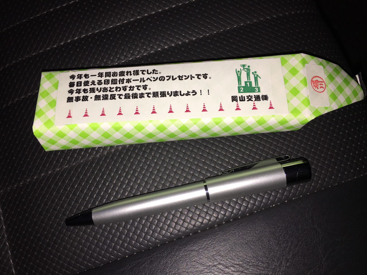 KATSU 2015.12.22 H27.12.22(火) 岡山交通プレゼンツ!in豊成!! 本日、クリスマス・イヴイヴイヴ??今年も会社から1年の労をねぎらってサプライズプレゼントをいただきました!そのプレゼントはこちら!! 印鑑付きボールペン!ボールペンはもちろんのこと、印鑑も社内の書類等、提出物には頻繁に使用する物・・・なんと実用的!長く愛用させていただこうと思います! ・・・・決して、反省文などというものには使用することはございませんので、あしからず・・・・。 一覧へ戻る