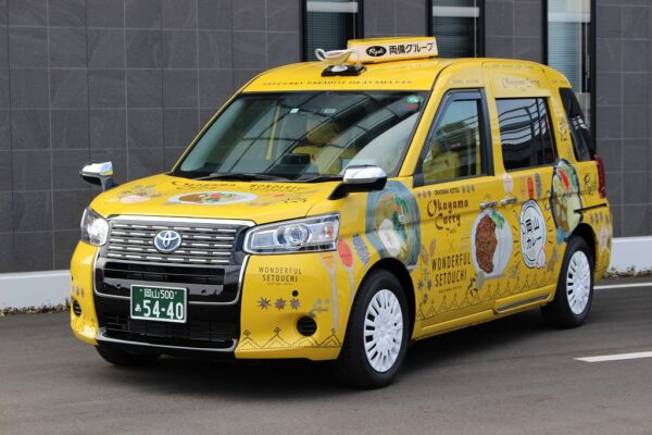 サンタロウタクシーや岡山カレータクシーなど、話題のラッピングタクシーにお乗りいただけます。