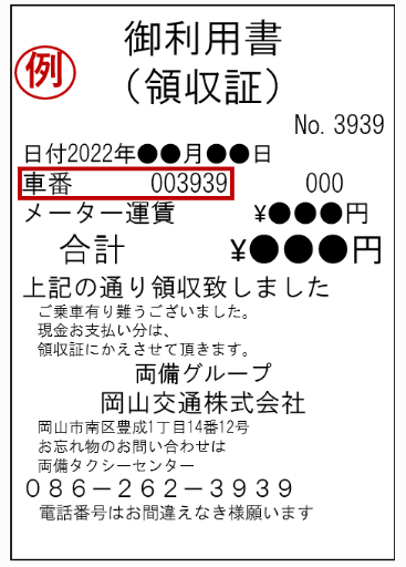 御利用書をお持ちでない場合も、乗車いただいたタクシーをお調べいたします。