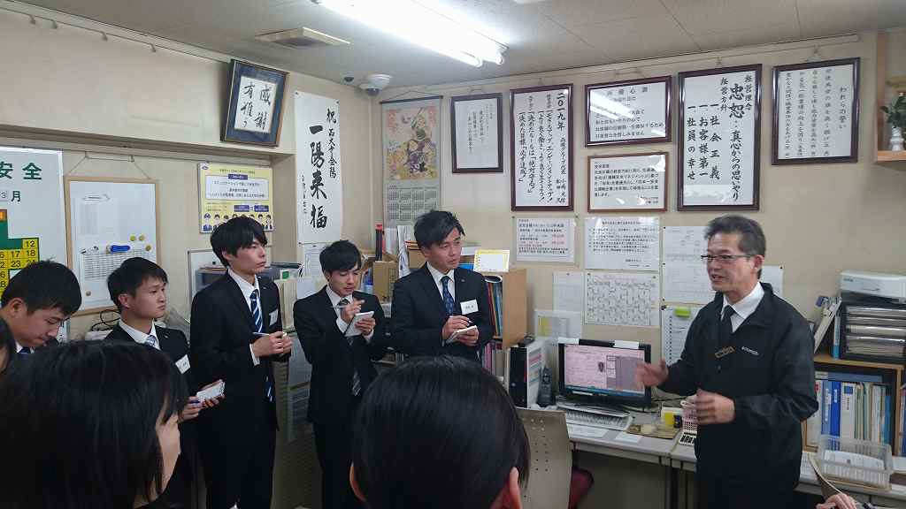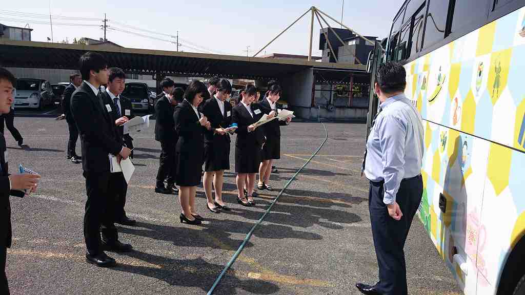 昨日に続き研修2日目の今日は、岡山交通に7つある営業所へ見学に行きました。
