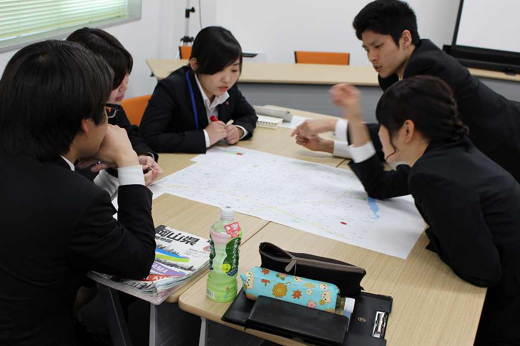 3つのチームに分かれて、チーム対抗戦です!色々な意見を出し合い、真剣にルートを考えています。