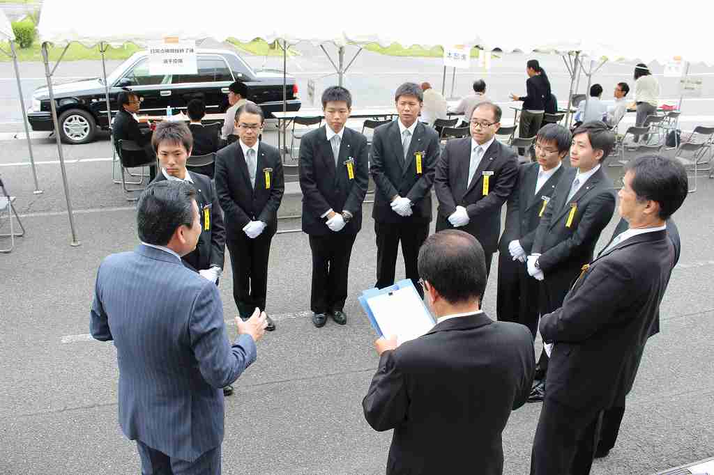 全体での合同開会式のあと、タクシー部門での開会式では、ユニット長の訓示をいただき、競技者は真剣な面持ちです。