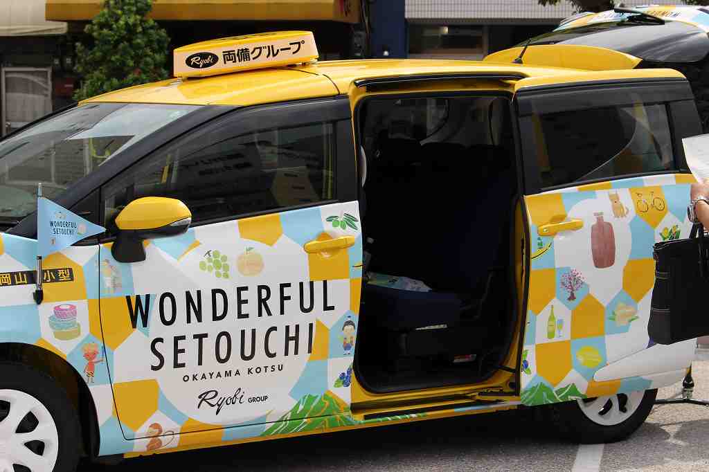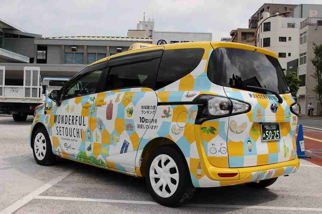 このワンセトタクシー、車内外には瀬戸内の魅力を存分に表現した仕様となりました。