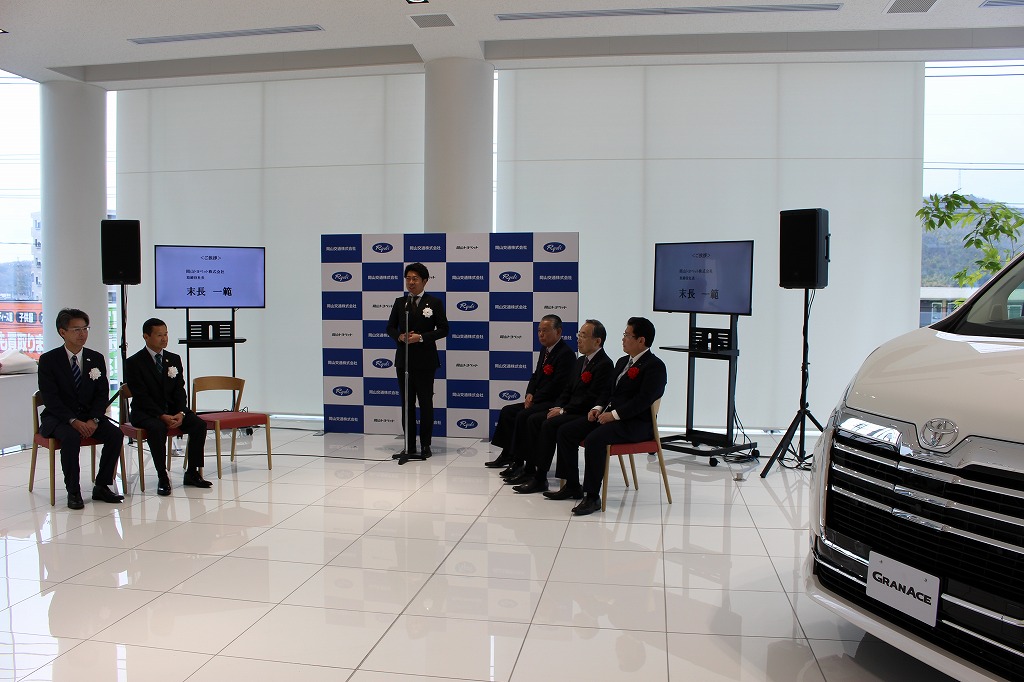 昨年12月発売の新型グランエース、県下第1号車として岡山交通へ納車になったことでおこなわれたものです。