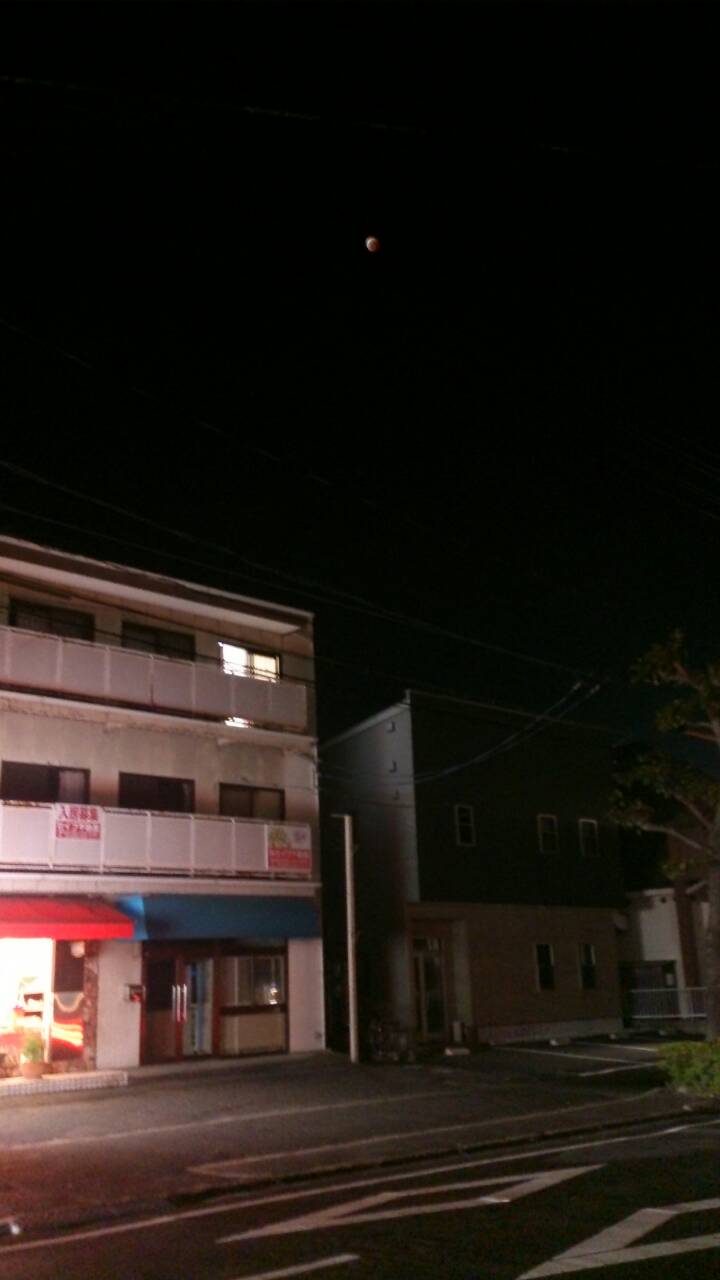 TAKA 2014.10.10 H26.10.08(水)出庫18:20~帰庫07:00 謎の物体!? 「おぉっ~~!!!!!」お迎えに行った店から出て来られた数名のお客様が、夜空を指差し、一斉に歓声をあげられた!!!約3年ぶりとなった昨夜の皆既月食!壮大な天体ショーに感動するのは大人も子供も関係ないようですね。。そこで、僕も思わずパシャ!!!・・・・・しかしそこに写っていたのは。。。。。 よ~くよ~く見てください!・・・決して謎の物体では。。。。。やっぱり、本物の美しさにはかないませんねえ~~ 一覧へ戻る