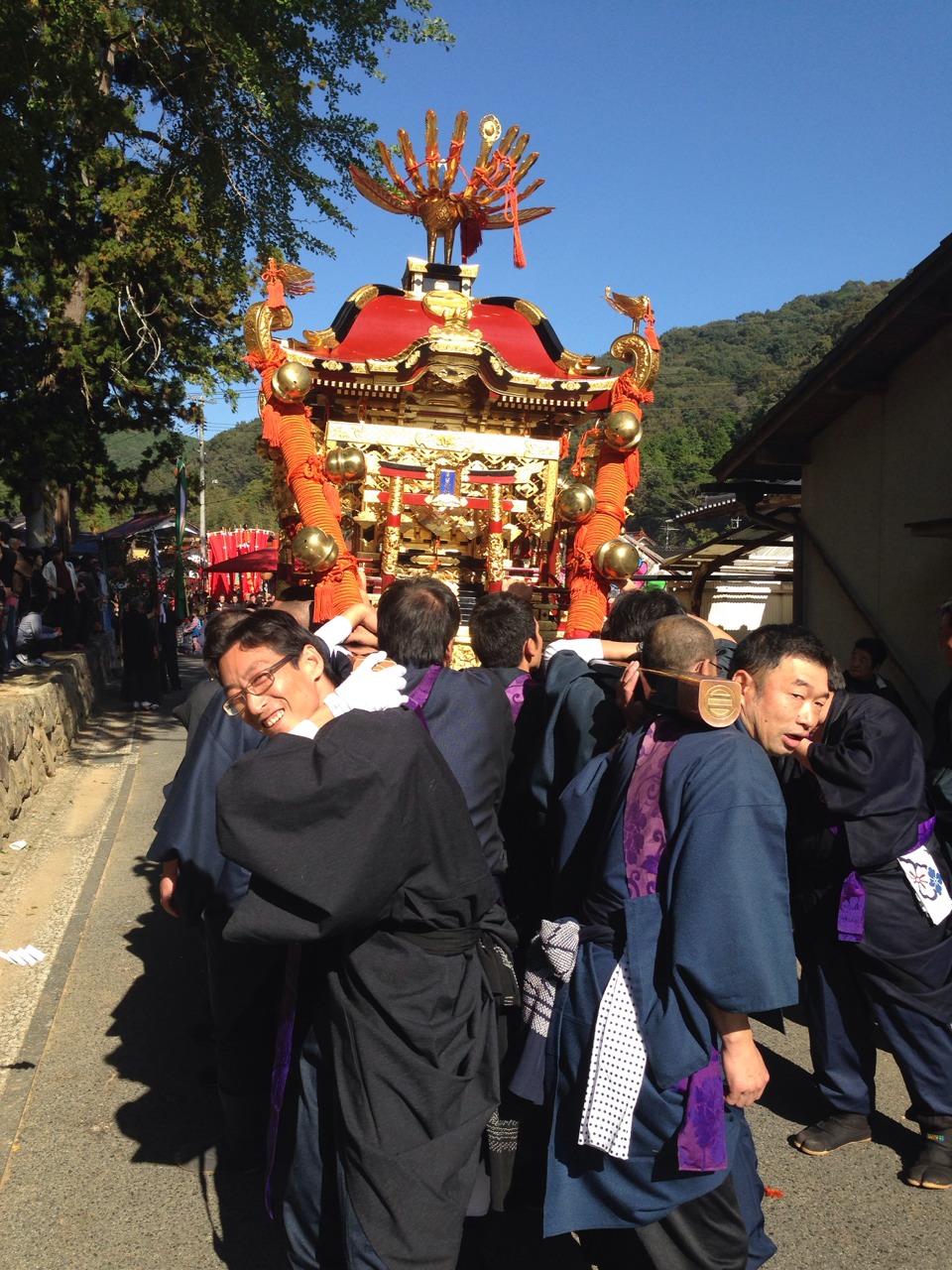 7時30分から御神輿を担ぐものの、・・想像以上に重い・・・。肩痛い・・・。