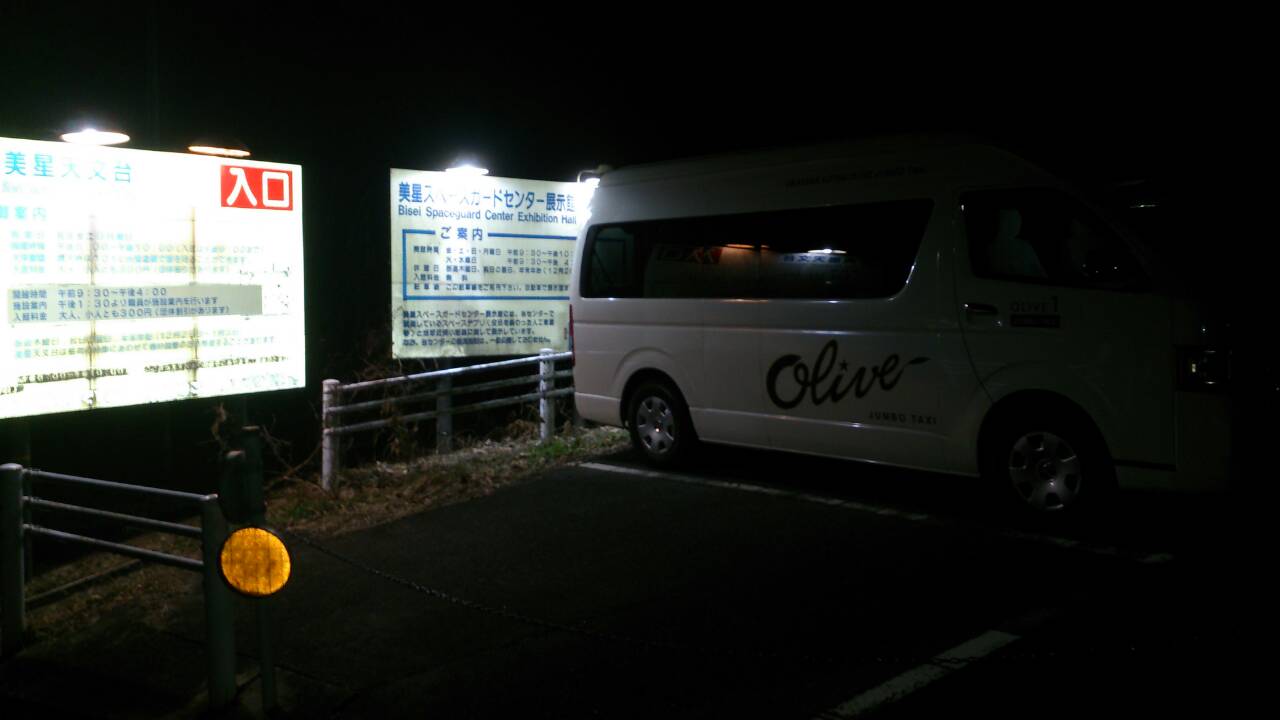 本日、ジャンボタクシーで倉敷市のホテルから美星町の天文台まで県外からのお客様を送迎するお仕事。ツアー名はその名も「美星町スターウォッチング」・・・営業所を出発する時には、あいにくの曇り空・・・。せっかくの天体観測なのに・・・。・・・そんな心配も取り越し苦労であったようで(なにせ、僕が運転する幸運を運ぶ『オリーブ号』!!!)、お客様をお迎えに上がり、天文台へ到着する頃には満天の星空が!!!日曜日ということもあり、駐車場にはたくさんの車も!約1時間の滞在の後、ホテルへの帰途へ着いたのでした。車内でのお客様の会話から、堪能された様子がうかがえた。ホッとひと安心。。。では、皆様にも。。。待機中に撮った写真で感動のおすそわけを!!