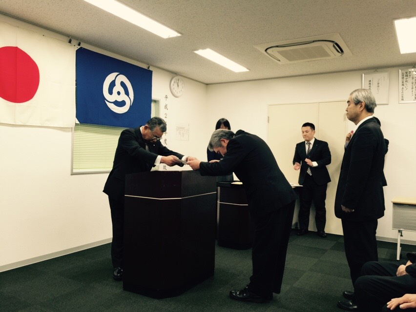 該当者数33名!18名の方に出席いただき、専務より贈呈されたのは、表彰状・賞金。旅行の目録がある方も!!