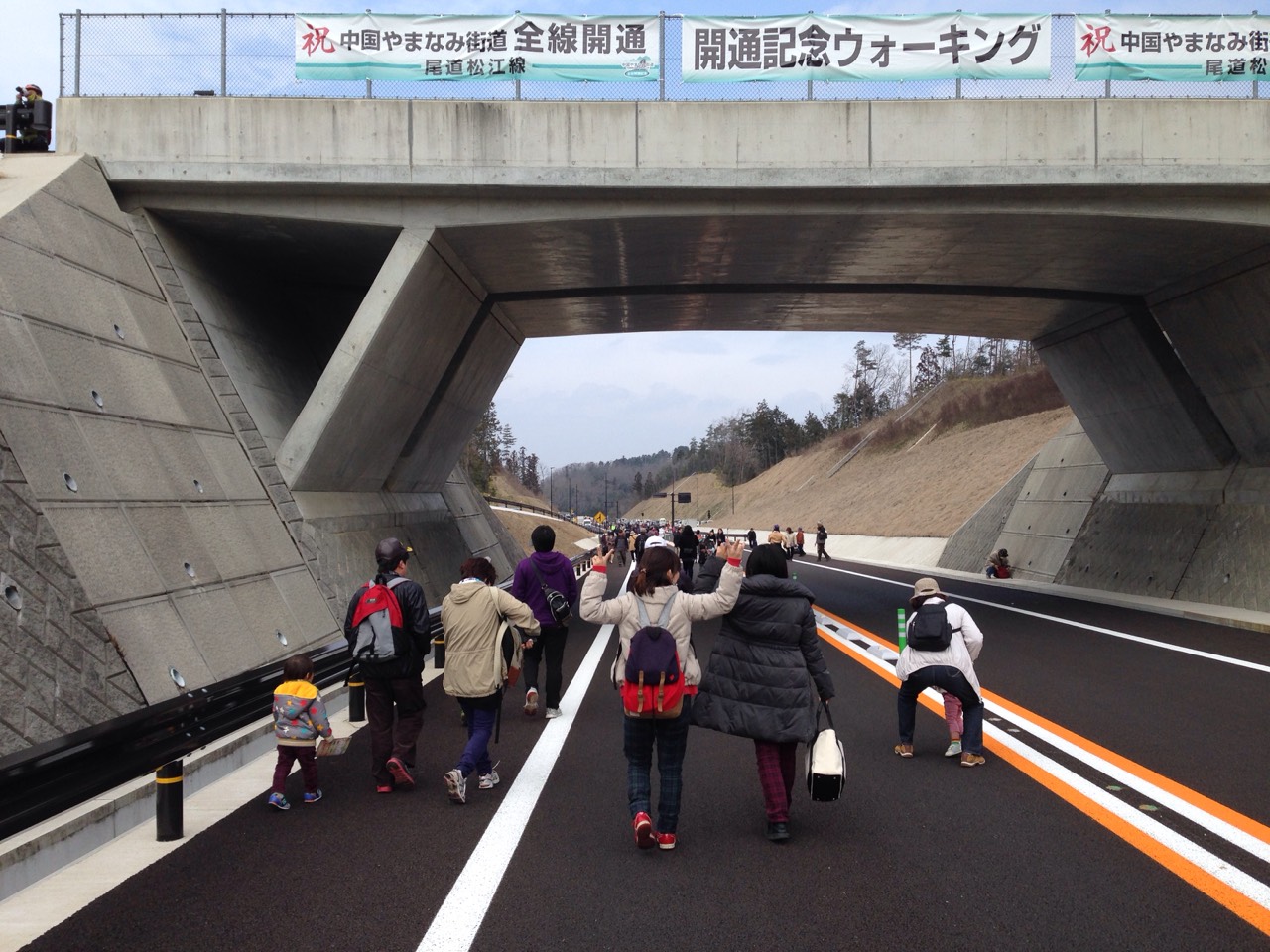 昨日の日曜日、休日を利用して尾道松江道開通プレイベントへ行ってきました!3/22に開通するこの自動車道は、山陽自動車道の尾道JCTから中国自動車道の三次東JCTを経て、山陰自動車道の宍道JCTまでの区間を縦断するものです。これによって岡山から島根への所要時間が大幅に短縮されるため料金も安くなり、お客様にとっても、僕たち乗務社員にとっても便利なこと間違いなしの道路なんです。3/15はその高速道路を歩くことができるプレイベントがあり、家族と貴重な体験をしてきました!それがこちら!!KATSUプレゼンツ!!!(TAKAさん、いただいちゃいました・・)