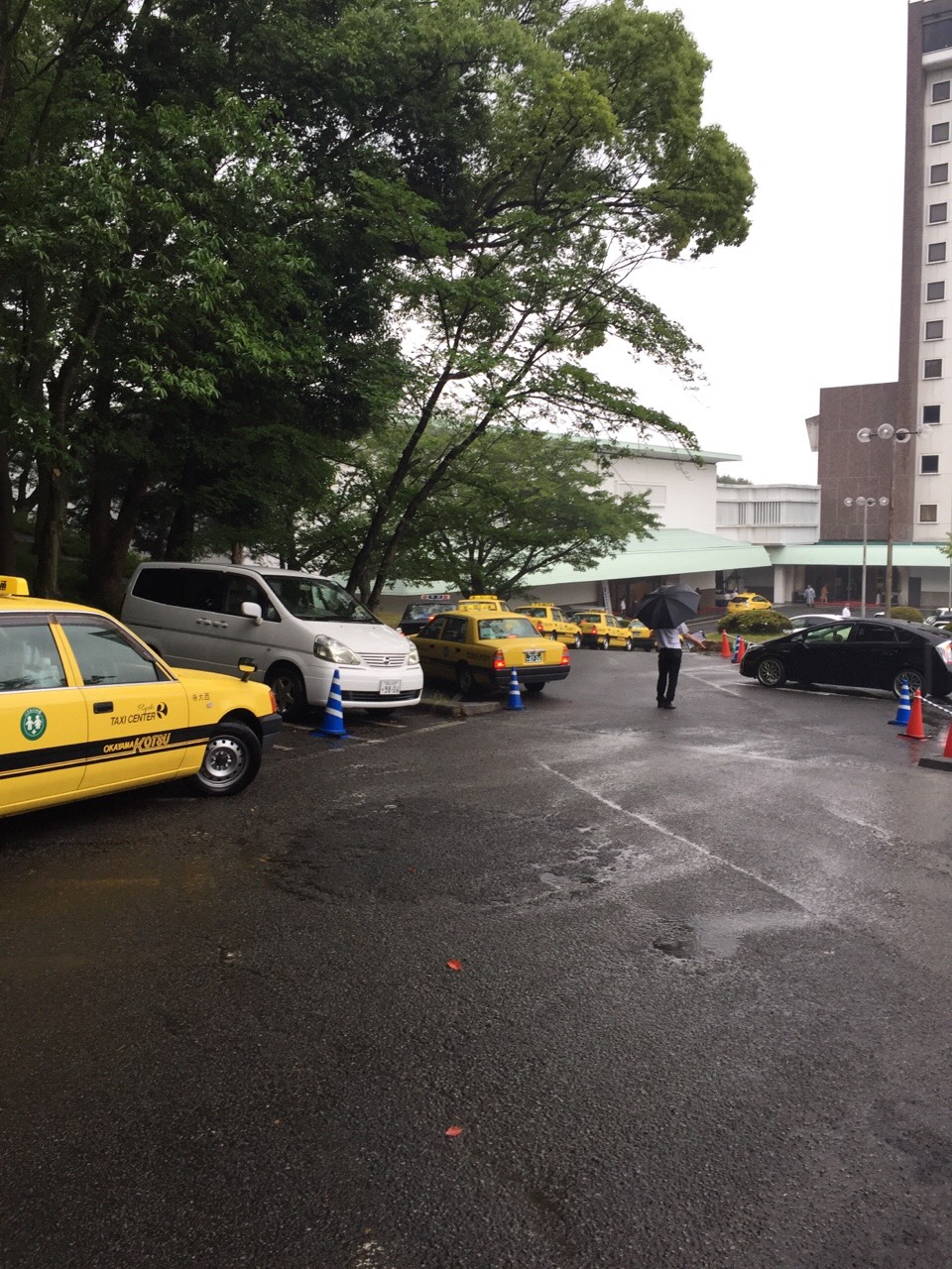 さて、本日は、雨の中、某ホテルで某著名人の某セミナーが開催されるということで、両備タクシーグループのカナメ!両備タクシーセンターが行う車両整理の応援に来ています!