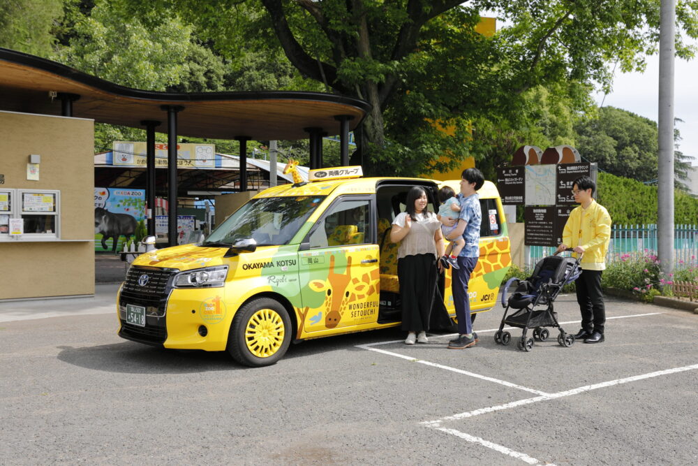 サンタロウタクシーは岡山市内を走っていて、手を挙げて止めていただくことも可能。