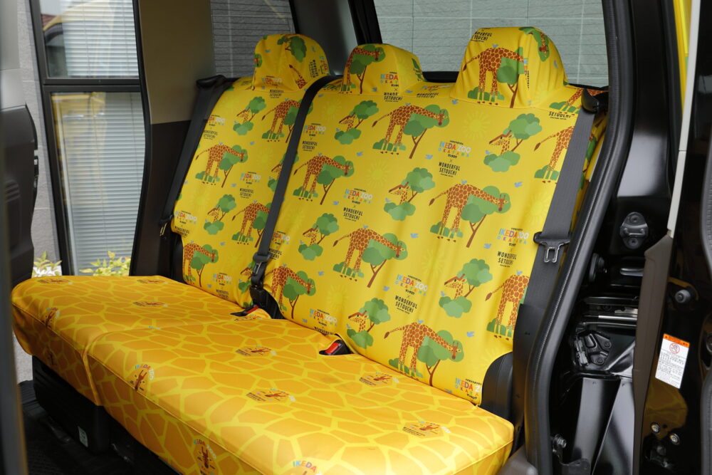 車内もキリン尽くしのデザインで、おこさまから大人まで人気のタクシーです。