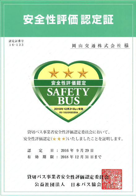 岡山交通は各項目で基準点以上をクリアして、認定をいただくことができました。