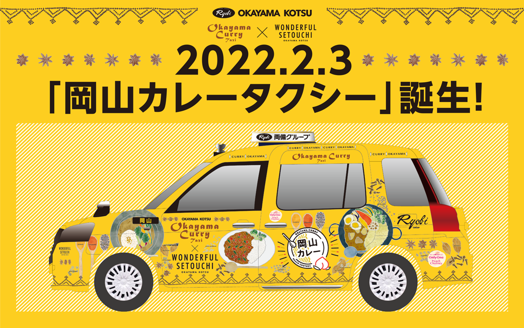「岡山カレータクシー」は、岡山・瀬戸内の魅力を発信する「WONDERFUL SETOUCHI」企画からうまれた「YELLOW SPECIALITY」シリーズの第2弾。(第1弾は「黄ニラタクシー」)